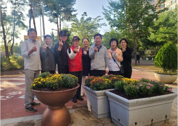 광명시 광명6동 주민자치회는 다가온 가을의 정취를 주민들과 함께 느끼고 즐기기 위해 지난 5일 도란도란 도심숲길 입구와 동 행정복지센터 화단에 삼색국화 70여 본을 심었다.