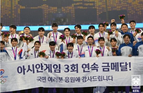 아시안게임 남자 축구 역사상 최초로 3연속 우승을 달성한 건 대한민국이었다. 아시안게임 남자 대표팀이 일본에 역전승을 거두며 대미를 장식했다.