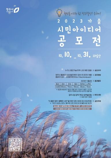 청주시는 시민들의 반짝이는 아이디어를 집중 발굴하기 위한 ‘2023 하반기 시민아이디어 공모전’을 개최한다고 9일 밝혔다.