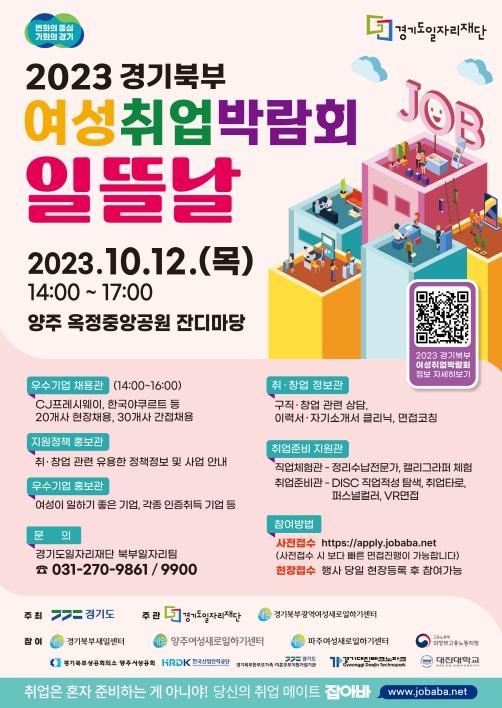 기도와 경기도일자리재단은 12일 오후 2시 양주시 옥정중앙공원 잔디마당에서 경기북부 구직여성을 위한 여성취업박람회 ‘일뜰날’ 행사를 연다.