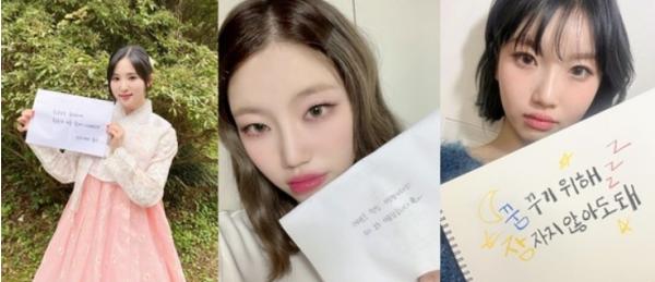 공개된 사진에서 송선은 파스텔 톤의 한복을 곱게 차려 입고 “한글날을 축하하며, 한글의 미를 함께 나눠 봐요“라고 직접 쓴 메시지를 든 채 은은한 미소를 짓고 있다. 또박또박 바른 글씨체에서 리더 송선의 다부진 성격이 엿보였다.