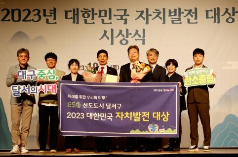 대구 달서구는 지난 5일 (사)한국자치발전연구원이 주최한 2023년 대한민국 자치발전 대상 시상식에서 기초부분 대상을 수상했다고 밝혔다.