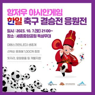 이번 응원전은 항저우 아시안게임 남자축구 결승전에 진출한 대한민국 대표팀을 응원하고, 세종시민이 함께 우승을 기원하기 위해 마련됐다.
