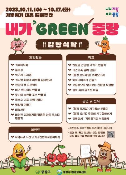 중랑구 환경교육센터가 오는 11일부터 17일까지 기후위기 대응 특별주간 ‘내가 GREEN 중랑; 감탄식탁’을 운영한다.