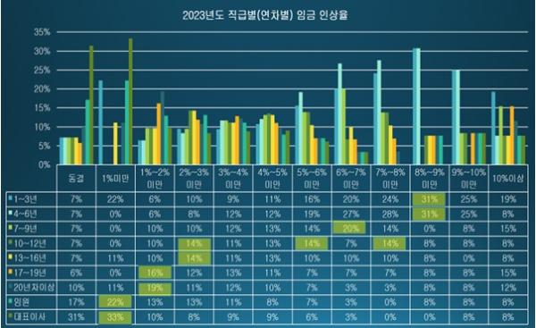 2023년도 연차(직급)별 임금 인상율