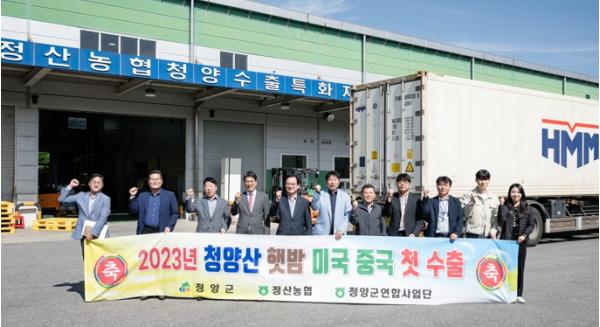 이날 수출 기념식은 장평면에 있는 정산농협 경제종합센터에서 열렸으며 김돈곤 군수, 황인국 정산농협 조합장 등이 참석했다.
