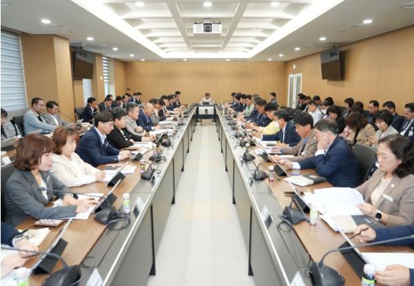 김기웅 군수는 10일 열린 확대간부회의에서 부군수, 국·과장, 읍·면장 등이 참석한 가운데 주요 현안 사항을 논의하며, 오는 25일 서천군 미래 100년을 여는 신청사 개청식과 함께 제61회 군민의 날 기념식 축하 행사의 철저한 준비를 당부했다.