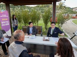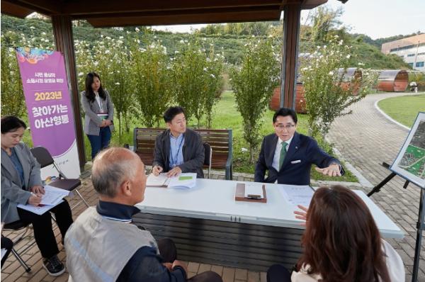 박경귀 아산시장은 지난 10일 ‘시장과 시민의 만남의 날’인 아산형통 다섯 번째 현장으로 배방읍 장재리 용곡공원으로 달려갔다.
