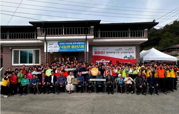 상주시종합자원봉사센터는 지난 7일 낙동면 화산2리에서 자원봉사자와 주민 등 200여 명이 참석한 가운데 ‘찾아라! 상주 행복마을 11호·경북 행복마을 57호’ 사업을 추진했다.