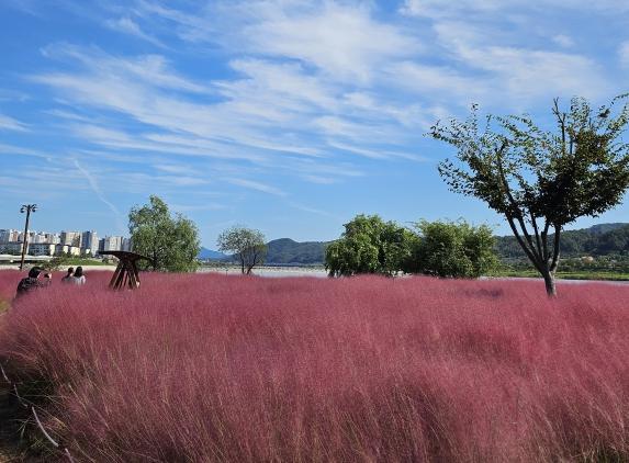 안동시 낙동강변(운흥동 300번지)에 핑크뮬리 5만 본이 분홍빛 파도를 출렁이고 있다. 핑크뮬리 꽃은 10월 초 만개하여 11월 초까지 피어 가을 동안 감상할 수 있을 것으로 예상된다.