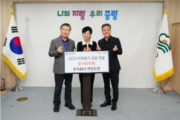 중랑구가 지난 10일 주식회사 카인드인(대표 차지은)으로부터 성금 5백만 원을 전달받았다.