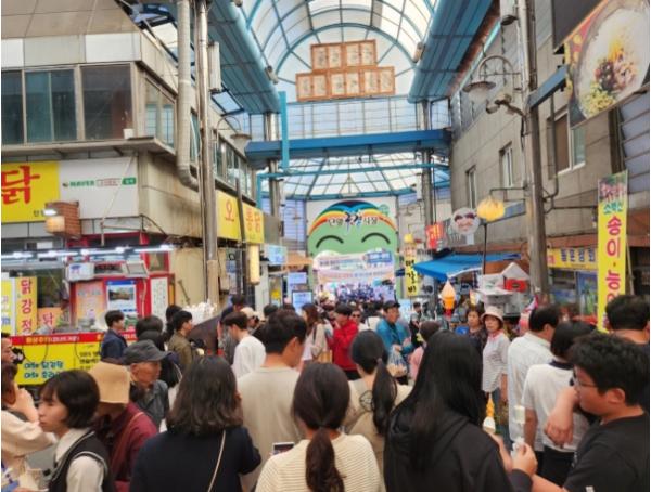 전국에서 관광버스, 개인차량 등 인파가 몰리면서 지역 대표 상권인 단양구경시장을 비롯해 주변 음식점, 카페, 숙박업소 등 도심 상권 전체가 북적였다.