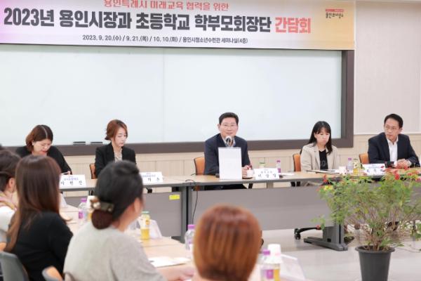 이상일 용인특례시장이 10일 처인구 삼가동 용인시청소년수련관 세미나실에서 ‘용인특례시 미래교육 협력을 위한 초등학교 학부모회장단 간담회’를 세번째로 열고 처인지역 교육 현안을 논의했다.