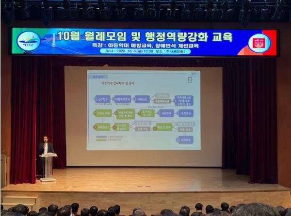예산군은 10월 직원 월례모임에서 아동학대에 대한 올바른 이해 및 예방을 위해 공무원 300여명을 대상으로 2023년 아동학대 예방교육을 실시했다고 밝혔다.