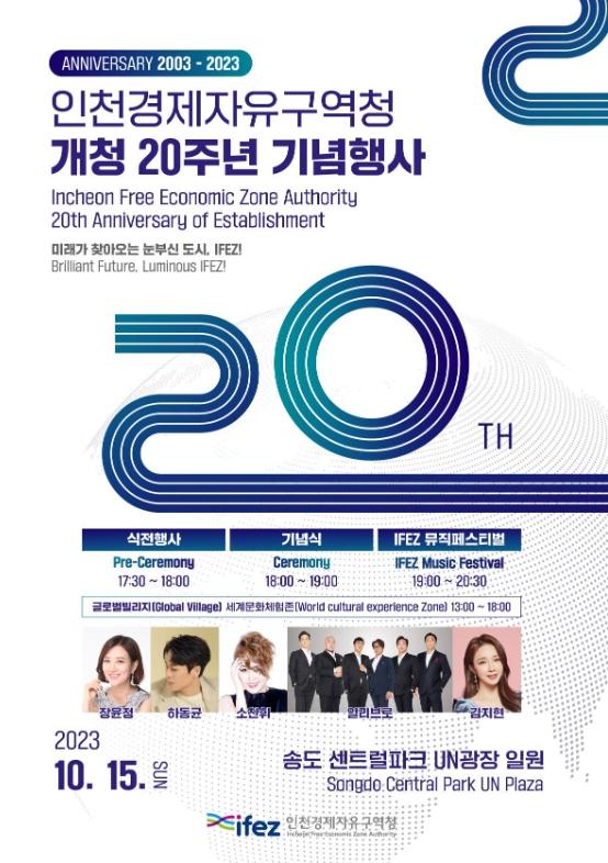 인천경제자유구역청은 오는 15일 저녁 송도국제도시 센트럴파크 UN광장에서 개청 20주년 기념 행사를 개최한다고 11일 밝혔다.