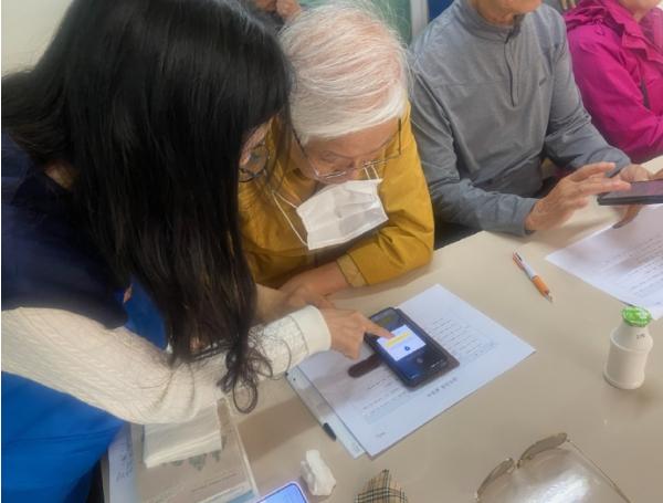 교육은 스마트 폰을 이용한 문자, 사진 전송하는 기본적인 사용법을 시작으로 ▲똑버스 호출하기 ▲인터넷/블루투스 연결하여 음악 듣기 ▲지도앱을 통한 길 찾기 서비스 등 평소 어르신들이 사용하기 어려운 기능을 쉽게 풀이하는 방식으로 진행됐다.