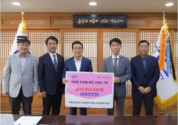 논산시는 지난 10일 오전 ㈜에코비트워터와 대전개인택시 논산향우회(회장 김천겸)가 논산시로 이웃사랑 성금을 기탁했다고 밝혔다.
