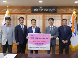 아울러 대전개인택시 논산향우회는 회원들이 십시일반 모은 성금 3백만 원을 논산시에 기부했다. 대전개인택시운송사업조합 소속 논산 출신 택시 사업자가 모여 활동 중인 향우회는 매년 고향 논산으로 성금을 기탁하며 지역사랑에 앞장서고 있다. 이날 기탁식에 참석한 김천겸 회장은 “타지에서 생활하고 있지만, 내 고향 논산의 미래를 생각하는 마음으로 기부에 임하고 있다”고 말해 감동을 줬다.