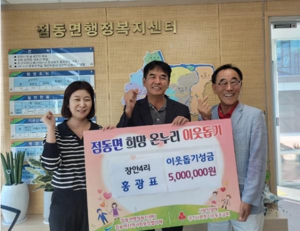 지난 10일 점동면 장안4리 홍광표(남양 엔지니어링 대표)는 관내 어려운 이웃을 위해 이웃돕기 성금 500만원을 기탁했다.