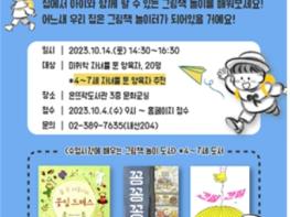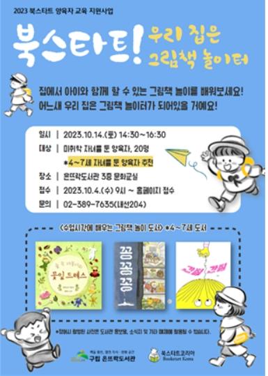 오는 28일에는 ’북스타트! 아이와 함께하는 그림책 놀이‘를 주제로 진행한다. 양육자 그림책 이론교육 후 8~10세 자녀와 함께 그림책 놀이를 실습하는 시간을 가질 예정이다. 특히, 양육자 이론교육 중에는 부모가 교육에 집중할 수 있도록 어린이자료실에서 ’자녀 돌봄 서비스‘를 제공한다.
