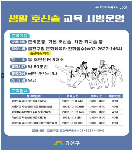 생활 호신술 교육은 올해 시범 운영한 후 만족도 조사를 실시하고, 개선사항을 반영하여 2024년부터 확대할 예정이다.
