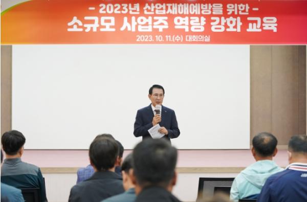 충남 서산시는 지난 11일 시청 대회의실에서 관내 민간 사업장 대표와 관리감독자 등 100여 명을 대상으로 ‘산업재해예방을 위한 소규모 사업주 역량 강화 교육’을 실시했다고 밝혔다.