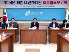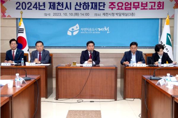 2024년 시 산하재단 주요업무보고회에서 김창규 제천시장은 인재육성재단, 문화재단, 복지재단, 한방바이오진흥재단 순으로 2024년 중점 신규사업 및 특수시책 계획을 보고 받고 2023년 주요추진사업의 성과평가를 논의했다.