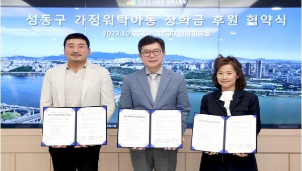 성동구는 이날 정원오 성동구청장과 이재선 GBF 봉사장학회장, 이지숙 사단법인 행복한 은빛세상 대표이사 등이 참석한 가운데 ‘성동구 가정위탁아동 장학지원사업’ 업무협약을 체결하고 가정위탁아동 10명에게 2,400만 원의 장학금을 지원하기로 약속했다.