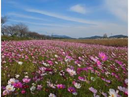 2023년 진천군 백곡천에 가을의 정취가 물씬 풍기는 코스모스가 만개해 장관을 이루고 있다.