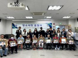 이날 전달된 사진은 지난 7월 서일대학교 교직원 및 학생들의 재능기부를 통해 촬영된 어르신들의 장수사진이다. 서일대는 메이크업부터 사진 촬영, 보정, 액자 제작 등 각자 전문 분야를 담당하며 봉사활동에 적극 참여했다.