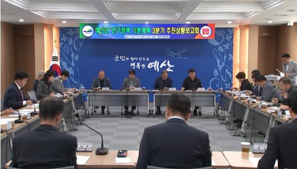 예산군은 지난 12일 군청 대회의실에서 최재구 예산군수를 비롯한 부서장과 인구감소대응위원회 위원 등 27명이 참석한 가운데 예산군 인구정책 기본계획 3분기 추진상황 보고회를 개최했다.