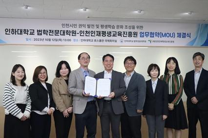 인천인재평생교육진흥원이 12일, 인하대 법학전문대학원과 업무협약을 체결했다고 밝혔다.