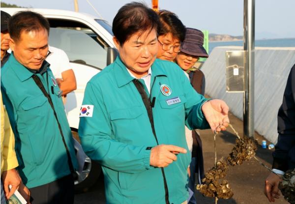 공영민 고흥군수는 14일 오후 고흥의 굴 주요 생산지인 포두면 취도마을을 방문해 고수온 피해 굴 양식장을 점검하고 시름에 빠진 어업인들을 격려하고 애로사항을 청취했다.