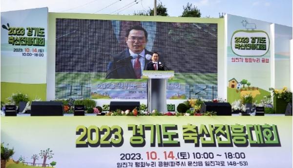 경기도의회 농정해양위원회 이오수 의원(국민의힘, 수원9)이 14일 임진각 평화누리공원에서 열린 ‘2023 경기도 축산진흥대회’에 참석, 도시와 농촌이 소통·상생하는 경기축산 한마당을 둘러보고 관계자를 격려했다.