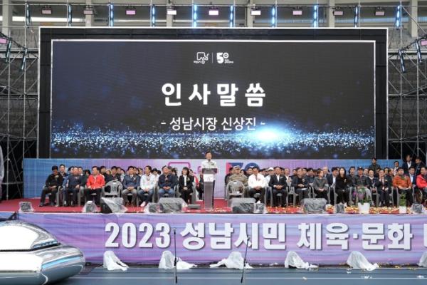 신상진 성남시장은 14일 오전 9시 30분 성남종합운동장에서 열린 다같이 으?으?! ‘2023 성남시민 체육·문화 대축제’에 참석했다.