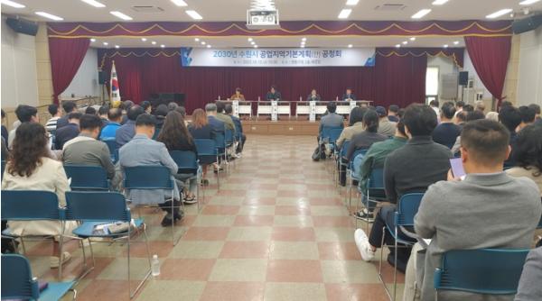 수원시가 지난 13일 영통구청 대강당에서 ‘2030년 수원시 공업지역기본계획(안) 공청회’을 열고, 시민·전문가의 의견을 들었다.