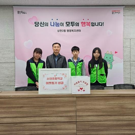 동 관계자는 “도움이 필요한 곳에 소현초 학생들의 마음이 온전하게 전달될 수 있도록 노력하겠다“며 ”성금은 지역 독거노인, 장애인 등 저소득 복지 취약계층 지원에 쓰일 예정이다“라고 말했다.