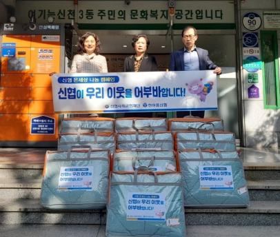 대구 동구 신천3동 한아름신협은 지난 12일 취약계층의 따뜻한 겨울나기를 위한 이불 10채를 행정복지센터에 기탁했다.