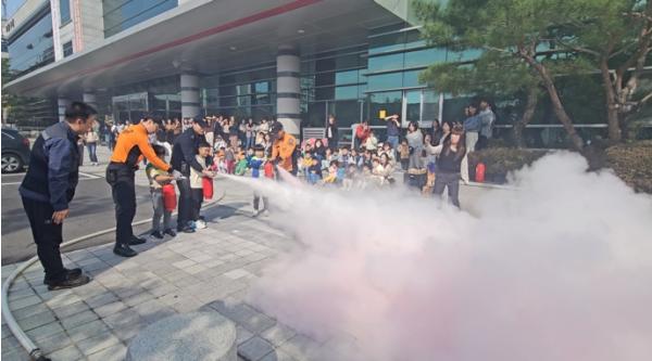 훈련을 마친 뒤에는 구갈119안전센터 소방대원의 안내에 따라 소화기와 소화전 사용법에 대해 교육했다.
