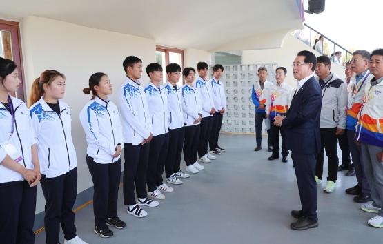 김영록 지사는 “전남을 대표하는 여러분이 정말 자랑스럽고 감사하다”며 “그동안 땀 흘리며 고생한 만큼 목표한 대로 좋은 결실을 거두길 바란다”고 선전을 기원했다.