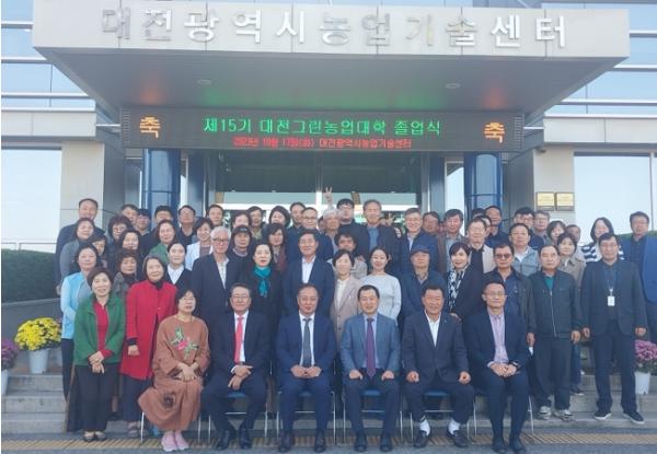 대전광역시 농업기술센터에서 운영하는 대전그린농업대학 제15기 졸업식이 17일 농업기술센터 강당에서 개최됐다.