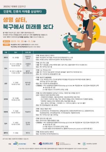 부산 북구는 부산대학교 한국민족문화연구소와 함께 제18회 인문주간을 맞아 오는 10월 30일부터 11월 5일까지 일주일간 북구 일대에서 다양한 인문학 행사를 개최한다고 밝혔다.