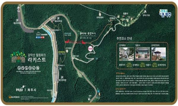 파주시는 가을 단풍철을 맞아 이용객들의 안전하고 쾌적한 산행을 위해 포스코 그룹과 협력해 감악산 출렁다리 등 주요 출입로에 안내판을 설치하는 재정비 사업을 완료했다.