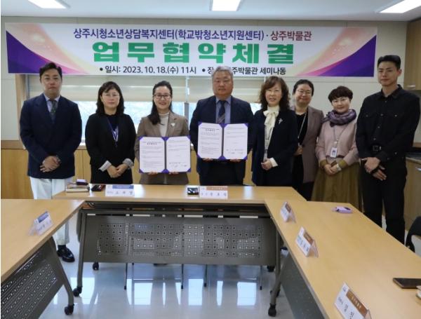 상주시청소년상담복지센터(학교밖청소년지원센터)는 상주박물관과 10월 18일 청소년 진로 체험 활성화를 위한 업무협약을 체결했다.