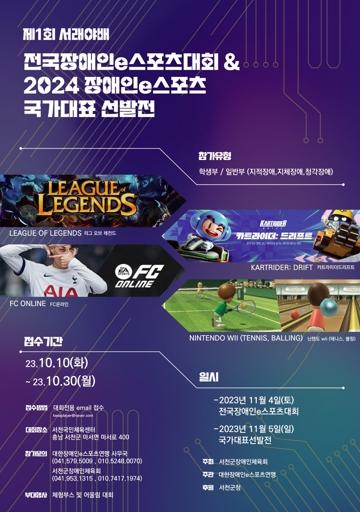 군은 오는 11월 4일부터 이틀간 서천국민체육센터에서 ‘2023년 서래야배 전국장애인e스포츠대회 및 2024 장애인e스포츠국가대표선발전’을 개최한다고 밝혔다.