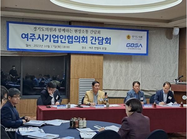 경기도의회 경제노동위원회 김규창 의원(국민의힘, 여주 2)은 10월 17일(화) 여주시 썬벨리호텔에서 개최된 경기도경제과학진흥원이 지역을 순회 하는 “경기도의원과 함께하는 현장소통 간담회”에 참석하여 지역 중소기업들의 의견을 청취하고 문제점 해결 방안을 논의했다.