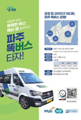 경기도와 경기교통공사는 20일부터 파주 운정?교하 지역에 똑버스 5대를 추가 투입해 15대로 증차 운행한다.