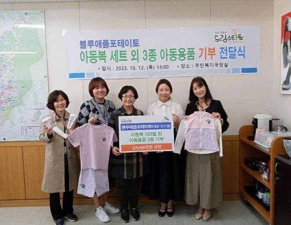 은평구 드림스타트는 지난 12일 블루애플포테이토로부터 아동복 160벌 등 940만 원 상당의 아동용품을 기부받았다고 밝혔다.
