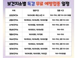 독감(인플루엔자) 및 코로나19 예방접종 지정 병·의원과 자세한 일정은 보건소 누리집 및 예방접종도우미 누리집에서 확인할 수 있으며, 궁금한 사항이 있으면 보건소 예방접종 콜센터로 문의하면 된다.