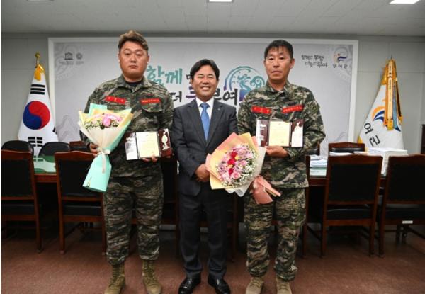 부여군이 지난 19일 2023 대백제전 행사기간 중 수상 인명구조에 기여한 민간부문 군정 발전 유공자 3명에 대해 감사패를 수여했다. 수상자는 (사)해병대전우회 충남연합회 부여지회의 장순천씨, 하홍식씨, 박익구씨 이상 3명이다.
